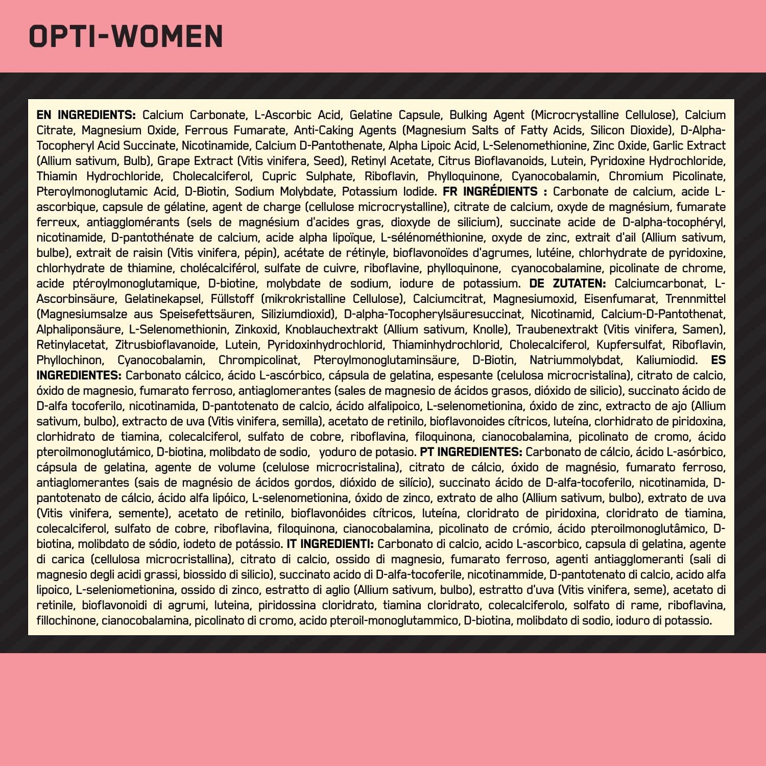 Opti-women has more than 20 active ingredients, including biotin to support psychological function, selenium and vitamin C to support the immune system, vitamin B6 and B12 reduce tiredness and fatigue, and zinc to encourage normal mental and cognitive performance. There’s also plenty of natural ingredients such as alpha lipoic acid, grape seed extract, and garlic extract.